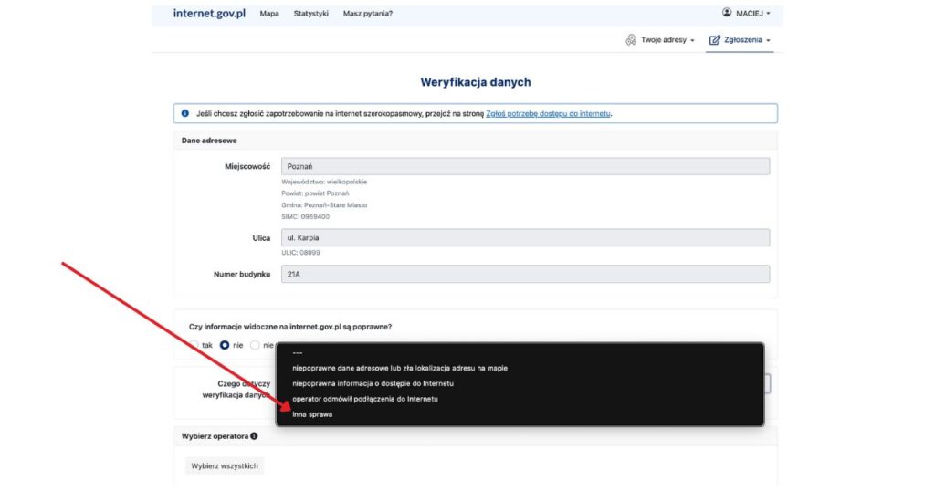 „Zgłaszam Białą Plamę, na moim adresie nie ma dostępu do stacjonarnego internetu, proszę o objęcie adres dofinansowaniem w ramach KPO4″.